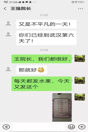 從隊員們踏上馳援之路起,黨委書記鮑百麗,黨委副書記、院長王強等全院領(lǐng)導(dǎo)干部職工日夜?fàn)磕?,圖片是元月31日夜院長王強發(fā)給領(lǐng)隊陳雅靜的問候,請隊員們保重身體。